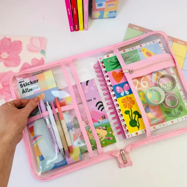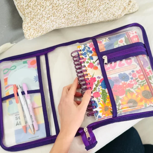 Diseñada para llevar tu agenda a todos lados, esta carpeta es práctica, espaciosa y con cierres pensados para guardar todo lo que necesitás en tu día a día: hojas, stickers, lapiceras ¡y más!