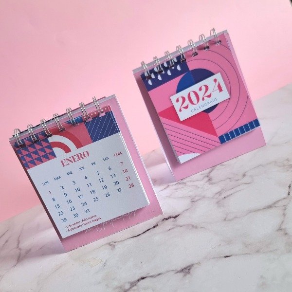 Calendarios mini de escritorio, base y tapas de 240g full color y totalmente personalizados para agregarle logo, frase o lo que quieras 💃 hojas de los meses de opalina de 150g